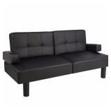 Best Choice Products Leather Faux Fold Down Futon Lounge Convertible Sofa Bed Couch - Black. In Previously Opened Carton. Retail $179.94