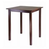 Winsome Solid Wood Parkland Pub Square Table. The size is ideal for seating up to four discerning individuals and will look fantastic in a kitchen or small dining area. Square Table assembled size is 33.86"W x 33.86"D x 38.98"H. Made from solid wood in warm walnut finish. Appears to be New in Original Packaging. Please attend the Preview to see the item for yourself. Retail $87.19
