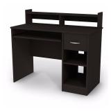South Shore Axess Collection Desk, Black. Computer desk with sliding tray Manufactured from CARB compliant composite wood carrying the Forest Stewardship Council (FSC) certification; laminated pure black finish 1 drawer; 1 sliding mouse or keyboard tray; 2 open compartments; back is unfinished Assembly required by two adults; Tools not provided; To clean, use a soft dry cloth; Made in Mexico Measures 42 inches wide by 20 inches deep by 36.75 Item is in factory box. Retail Price $99.99 |