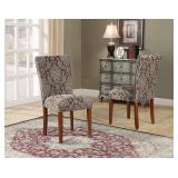 Roundhill Furniture Damask Fabric Parsons Chair, Brown, Set of 2. Crafted with a wooden frame, legs in an espresso finish Upholstered in a damask print fabric, hues of brown Contoured back and high density foam for comfortable seating, assembly required Chair measures approximately 19l x 23.5w X 38h in.; Seat measures 19h in Photo may slightly different from actual item in terms of color due to the lighting during photo shooting or the monitor's display Item is in factory box. Retail Price $137.99 |