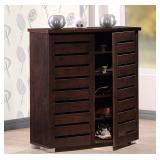 Wholesale Interiors Baxton Studio Adalwin Modern and Contemporary 2-Door Dark Brown Wooden Entryway Shoes Storage Cabinet. Finish: Dark brown finish 2-door version comes with 4 fixed shelves providing 5 shelving space 2-door version fits up to 15 pairs of shoes Made of solid wood; Large cheval mirror Suitable for hallway Item is in factory box. Retail Price $128.01 |