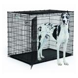 Midwest Solution Series "Ginormus" Double Door Dog Crate. Metal dog crate measures 54L x 37W x 45H Inches, ideal for extra large dogs weighing over 90 pounds (Great Dane dog crate) Double door configuration metal dog crate includes easy to clean / removable durable leak-proof pan and 4 rubber "roller" feet to protect hard floors Durable heavy duty metal dog crate design w/ 2 heavy duty secure slide-bolt latches per door Drop-pin construction (4 drop pins) ensures strong & secure dog crate assembly Item is in factory box. Retail Price $97.49 |