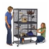 Critter Nation / Small Animal Cage with Stand. Full Width Double Doors Provide Maximum Accessibility for Easy Cleaning & Feeding 1/2 " Horizontal Wire Spacing Allows Pets to Fulfill Their Instinct to Climb & Explore in Secure Environment Wide Expanse Shelf & Full Width Plastic Pan Floor to Provide Maximum Play Area & Prevent Dangerous Falls Less-Mess and Easily Removable Height Adjustable Shelves with Removable Plastic Tray for Easy Cleaning Happy Feet Ramp Cover Protects Pets Feet and Provides Traction & No-Slip Passage Between Levels Item is in factory box. Retail Price $214.99 |