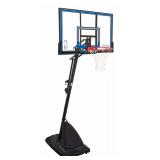 Spalding Portable Basketball System - 50" Polycarbonate Backboard. Portable basketball system with 50-Inch polycarbonate backboard Heavy duty steel frame, pro slam breakaway rim for serious dunks Height lift system adjusts from 7.5 to 10-Feet in 6-Inch increments 2 Wheel, 34 gallon base fills with sand or water for maximum stability 3 Piece, 3.5-Inch round pole, front cover acts as re-bounder during play Item is in factory box. Retail Price $249.99 |
