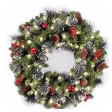 National Tree CW7-306-24W-B 24-Inch Crestwood Spruce Wreath with Silver Bristle - Battery Operated. Trimmed with silver bristle, pine cones, red berries and glitter Indoor or outdoor use 24" diameter Pre-lit with 50 UL listed, Soft White LED lights Battery operated with 6 hours ON/18 hours OFF timer Item is in factory box. Retail Price $29.99 |