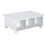 ClosetMaid 1599 6-Cube Activity Storage Table, White. Oversized top for a play area for children. Create your own unique look with Cubeicals accessories. Inside Dimensions of 1 Cube: 11.25 in.H x 11.25 in. W x 11.75 in. D. Material: Laminated wood. This product is CARB 93120 Compliant - Phase II. Item is in factory box. Retail Price $125.35 |
