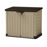 Keter Store-It-Out MAX Outdoor Resin Horizontal Storage Shed. Stylish wood-look texture in neutral colors to complement any home Made from polypropylene resin plastic & steel reinforcement to ensure its durability Storage capacity: 38.97 cu. ft. Floor weight capacity: 30 PSF Roof weight capacity: 15 PSF Item is in factory box. Retail Price $206.14 |