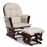 Stork Craft Hoop Glider and Ottoman Set, Espresso/Beige. This is the ideal glider and ottoman combination for your nursery with generous seating room, padded arm cushions and a pocket to store your belongings. Featuring metal, enclosed ball bearings for a smooth glide motion to help you unwind. The back and seat cushions are spot cleanable, keeping the look clean and fresh all year long. Back and seat cushions are hand washable only Item is in factory box. Retail Price $146.66 |