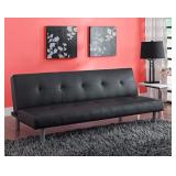 DHP Nola Tufted Futon, Black. Black faux leather upholstery Round silver colored metal legs Button tufted for a chic, polished modern look Sturdy wood frame construction Easily converts from sitting to lounging or sleeping positions Item is in factory box. Retail Price $133.33 |