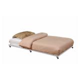 Kings Brand Twin Size Cream White Metal Roll Out Trundle Bed Frame for DayBed. Kings Brand Twin Size Cream White Metal Roll Out Trundle Bed Frame for DayBed. This handy metal trundle bed features tubular construction with seven slats that can hold up to 500 pounds. This trundle bed features roller wheels so that it can be easily stored when not in use. Dimensions: 4 inches high x 73 inches wide x 39 inches deep. Simple assembly required. Item is in factory box. Retail Price $62.99 |