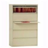 Sandusky Lee LF8F425-07 800 Series 5 Drawer Lateral File Cabinet. This Sandusky Lee 800 Series lateral file cabinet is made of steel and has five full suspension file drawers for storing and accessing letter-size or legal-size hanging files. 5 drawer has posting shelf, flip front top drawer. Full drawer extension on genuine progressive telescoping ball-bearing slides provides smooth, trouble-free operation. Built-in drawer interlock system prevents more than one drawer from opening at a time, reducing the chance of cabinet tip over. Center lock securely locks both sides of each drawer for positive security, two keys provided. Size: 19.25" Depth x 66.375" Height x 42" Width. Color: Putty. We received this cabinet on a pallet by itself. It is in good working order but does have some dents on it. The 2 lower drawers are dented and there is a scratch on the front of it. We took pics of the damage, look at pic 2 and 3! Retail New $759.00. |