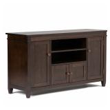 Simple Home,3AXCCRL-08 , Carlton TV Media Stand. You have just spent a bundle on a your new ultimate flat screen TV. Now what you need is the perfect TV Stand to enhance your viewing pleasure. Look no further. The Carlton TV Stand is perfectly sized for TV's up to 60 inches. The 30 inch height puts the TV at a level that is ideal for comfortable viewing. The Carlton TV Stand has plenty of storage and space for all your media and gaming devices. It has a large centrally located open area with one adjustable shelf as well as an enclosed space. The two large side storage cabinets open to one adjustable shelf. The unit features cord management cut-outs for easy installation of TV and media components. Overall: 54 x 17.5 x 30 inches. Finish: Dark Tobacco Brown. In original box. Retail $599.99. (37) |