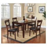 Homelegance Furniture,2469, Oklahoma 5-Piece Dining Set. Create a gorgeous dining centerpiece and a functional gathering area in your home with this 5 piece Homelegance Oklahoma dining table. Dining table set from Home Elegance Oklahoma collection comes with the weight of 139 lbs, it includes a table and 4 chairs. Featuring double notched legs, a design that carries to the bi-cast vinyl seated chairs, which support the double thick table top and is a smart addition to your dining room. Overall: Table: 36 x 48 x 30H, Chair(4): 17.5 x 21 x 38H. Finish: Espresso. In original box. Retail $480.00. (29) |