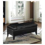 Simple Home,3axcot-245,Oregon Rectangular Storage Ottoman Bench with Tray. Having purchased your new Sofa, you are looking for a furniture piece to do double duty...as a Coffee Table and storage piece. The Oregon Storage Ottoman with Tray is the perfect solution. It is made from Midnight Black Faux Leather and is extra strong and durable. It features a beautiful stitched exterior with tufting and a sturdy wooden tray. Whether you are using it as an eating surface, a storage unit or just to put your feet up, the Oregon Ottoman will be a great addition to your home. Overall:42.1"W x 19.75"D x 17"H. Color: Midnight Black. In original box. Retail $422.98. (46) |