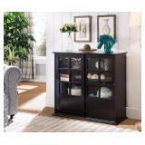 King Brand Furniture Wood Curio Cabinet with Glass Sliding Doors. Bring an instant and dramatic update to your home with this versatile curio cabinet. Whether you seek a fancy alternative to the bookshelf or need a place to display your fine china, this cabinet is a tasteful solution. Overall: 40W" x 15.5"D x 36.25"H. Finish: Espresso. In original box. Retail $225.95. |