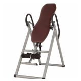 IronMan,5402, Inversion Table is built with a durable tubular steel frame with a scratch resistant powder coated finish. Memory-foam vinyl covered backrest with removable lumbar pillow for a comfortable head and back. It has tough rubber non-skid floor stabilizers that provide stability when inverting. Extra long safety handles provide easy return to the upright position and vinyl safety covers are added for safety. The ergonomically molded ankle holders provide comfort and security. When not in use, the inversion table can be folded. Overall: Set Up Dimensions 49"L x 26"W x 62"H. Folded Dimensions 29.1" x 29.9" x 76". In original box. Retail $349.99. |