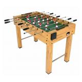 Best Choice Products,SKY2603, 48" Foosball Table. Make time for some competitive fun with this classic table-top game. The casual and sporty appeal allows you to place the foosball table as a center piece in your man cave, or as a fun addition to your home entertainment area for the whole family to enjoy. Constructed with medium density fiberboard and chrome finished steel rods to remain sturdy and stable. The table features a cup holder on each end (2 cup holders total) to make your drinks easily accessible as you play. Eight rows are included within the table to allow 4 rows per team. The two colors for the teams are red and white with 11 soccer players per team. The rod bars have comfortable grips to better control the ball (2 balls included) as it slides on the smooth, friction-less surface for that game winning goal. The necessary instructions are also provided to get the table up and the game started. Overall:47”(L) x 24”(W) x 33”(H). In original box. Retail $189.99. |