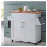 Hodedah Kitchen Island can be used as a cabinet space as well as table top for small appliances. A great way to save space and reorganize any kitchen, this multipurpose cart is a great addition to any home. The single drawer and cabinet below provide compact kitchen storage for a wide range of items; including small kitchen accessories, utensils, dry goods, as well as plates and baking dishes. Finish: White. Overall: 15.6 x 44.9 x 35.2 inches. In original box. Retail $199.99. |