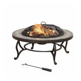 Pleasant Hearth Elizabeth Natural Slate Top 34-Inch Fire Pit. Do not let the stylish appearance of the Elizabeth Slate fire pit fool you. This lovely fire pit can handle anything from a cozy get together, to a full blown party. Whether they are admiring its hand-laid tiles or discussing all of the unique features, your fire pit will be a total hit with all of your guests. To start, this fire pit is fully prepared to give you a long lasting fire. For a more consistent flame, the Elizabeth comes with a wood grate to keep oxygen circulating. With this fire pit, you can spend more time enjoying your fire rather than trying to maintain it. The 24 inch enameled bowl can handle extreme temperatures, ensuring that your unit will last longer than the regular heat-resistant paint commonly used on other pits. 34-inch natural slate top with copper accents, cast iron legs, included a steel rubbed bronze top to convert as a table while protects fire bowl. In original box. Retail $199.99. |