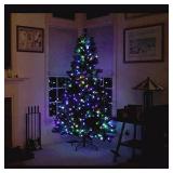 Mr. Light,78549, 7.5 Ft. long Pre-Lit Memory Shape Pop-Up Spruce Tree with 400 Multicolor LEDs and 40 Completely Different Function & Color Combinations. Durable PVC, 614 tips. Measures 7.5 ft Tall with 49" Diameter. Pre-strung with 400 Dual Color LEDs (warm white/multicolor) UL Listed 614 Branch mixed hard needle & PVC tips with shiny silver glitter. All metal hinged construction (branches are attached to center pole sections) Comes in 3 sections for quick and easy set-up. 7-1/2-foot festive artificial tree that makes for easy holiday decorating. Hinged construction and pre-strung lights make assembly fast and easy. This pre lit christmas tree contains 400 Multicolor LEDs with Steady-On, Fading, and Flashing functions and bulb-lock feature. Spare bulbs, fuses, and metal tree stand are included. Flame-resistant and non-allergenic. Reusable storage carton is handy for keeping the tree in great shape for next year. In original box. Retail $399.99. |