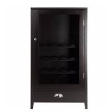 Winsome,92419, Bordeaux 20 Bottle Floor Wine Cabinet. This shelf is a great addition to your home. The simple design has straight lines and a dark finish. Perfect storage piece for the wine enthusiast. The cabinet provides a spacious single drawer for your accessories, stemware rack and four shelves for your wine bottles. Create a wine storage system with additional units and sit them side by side. The glass rack has four sliding slots for storage up to 16-20 glasses. Total of four shelves will store 20 bottles of wine. Clear Glass Door with dark wood frame. The cabinet is made with a combination of solid and composite wood in espresso finish. Overall: 40'' H x 22'' W x 16'' D. In original box. Retail $212.99. |