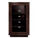 This refined audio/video component tower cabinet was designed with elegance in mind. The wood panels feature a beautiful Dark Espresso finish. Components are hidden behind a dark tinted tempered safety glass door that allows for remote control operation and reduces dust. It accommodates at least four audio/video components on four height-adjustable interior wood shelves with internal ventilation slots for convection cooling of those components. The integrated CMS Cable Management System consists of two removable rear panels for easy access and management of wires and interconnect cables. Tinted tempered safety glass door allows for remote control operation and reduced dust. Adjustable interior wood shelves hold at least 4 audio/video components. CMS Cable Management System hides and manages interconnect cables and power cords. Weight Capacities: Top Shelf: 75 lbs. Lower Shelves: 50 lbs. Overall Dimensions: 24"W x 42"H x 22"D. Item Weight: 116 lbs. Finish: Real wood cabinet in a Dark Espresso. In original box. Retail $359.99. |