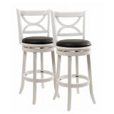 Boraam,03729, Florence Stool. This beautifully constructed swivel stool is the perfect addition to your home. The attractively designed backrest plus the plush black seat, exuberates sophistication. The compatible design will undoubtedly merge seamlessly with any style kitchen, basement, game room, or bar. Constructed from solid hardwood, made with precision construction, and features a steel ball bearing swivel plate for a flawless three hundred and sixty degree swivel, making the Florence stool a durably solid piece of furniture. Performance tested by the leading testing facilities that are recognizable worldwide, purchasing this stool is not only a smart choice but also a wise investment. Additionally, the sleek bonded leather upholstery encases a high-density foam cushion providing the maximum level of comfort for all who sit. Recommended for residential use only. Size: 29-Inch. Finish: Distressed White. Qty: 2-Pack. In original box. Retail $167.99. |