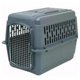 Aspenpet Pet Porter Kennel combines value with preferred features, such as heavy duty plastic shells, wire doors with squeeze chrome door latch, plastic wing-nuts that won't corrode, interior preimeter moat to keep pet dry and tie-down holes on all four corners. Meets airline requirements and has a "tamper proof" through the door hole for use with zip-ties for secure travel. Color: Dark Gray. Measures 32 by 22-1/2 by 24 inches. Size: 30-50 LBS. In a shipping box. Retail $94.99. |