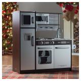 KidKraft,53260,Uptown Espresso Play Kitchen. Perhaps our finest kitchen yet, the Uptown Espresso Kitchen earned People's Choice Toy of the Year Award in 2016. Small wonder, given its realistic and contemporary feel. Crafted from sturdy composite wood, the kitchen’s motif simulates the dark wood and stainless steel design found in modern kitchens. Small wonder, given its realistic and contemporary feel. Crafted from sturdy composite wood, the kitchen’s motif simulates the dark wood and stainless steel design found in modern kitchens. All appliances are interactive, including doors that open and close, knobs that turn and click and a working chalkboard on the freezer door. Functioning doors on microwave, dishwasher, refrigerator, freezer and oven. Shelving for pots, pans and accessories. Mobile play phone and hands-free clip. Clicking, turning oven knobs. Chalkboard surface on the freezer. Speckled granite-style countertops. Convenient storage space above the sink. Dimensions: 43"L x 17.75"H x 41"H In original box. Retail $169.99. |