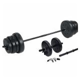 US Weight 105 lb. Weight Set with Dumbbells. Don't waste your money on a gym membership when the US Weight 105 lb. Weight Set with Dumbbells has everything you need. This heavy-duty vinyl weight set includes everything you'll need to start a new fitness regimen in the convenience of your own home: (4) 5-pound weights, (4) 10-pound weights, (2) 20-pound weights, two dumbbell bars, a 4-pound two-piece straight bar, and six locking spring clips. The heavy-duty straight bar features textured grips and a patented design to reduce the stress of lifting. An informative user guide is also included. Assembled dimensions: 55L x 12W x 12H inches. In factory shipping box. Retail $79.89. |