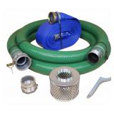 Eagle Hose PVC/Aluminum Water/Trash Pump Hose Kit, 3" Green Suction Hose Coupled C x KCN, 3" Blue Discharge Hose Coupled M x F WS, 29 Vacuum Rating, 70 PSI Maximum Temperature, 50' Length, 3 ID. The Eagle Water Pump Suction & Discharge Hose Kits are designed to work with water/trash pumps. Eagle Pump Hose Kits offer everything necessary to use your pump, including: suction hose, discharge hose, strainer, & any couplers or adaptors required. Hose assemblies come in two general types: pin lug and Cam & Groove. The essential difference is how they connect to the pump. Pin lug hoses are threaded onto the pump, much like a garden hose. Cam & Groove hoses use a “quick connect” system that locks on to the pump. Couplers and adaptors are used to connect the hose to either a pump or another hose and include: Cam & Groove, Water Shanks, Strainers, Elbows, Nipples, and more. Couplers and adaptors come in a variety of materials, including: Aluminum, Brass, Polypropylene, Steel, and more. Eagle Pump Hose Kits provide World Class Solutions to every agricultural application for the transfer of air, water, liquid fertilizer, fuel, and high pressure hydraulics. Hose and fittings to complete any job that may arise. in factory shipping box. Retail $180.99. |
