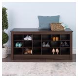 Prepac Espresso Shoe Cubbie Bench. Store your shoes where you put them on with our Shoe Storage Cubbie Bench. Dual-purposed and versatile, this bench is a great addition to your foyer, mudroom, utility room or bedroom. Each of the 18 individual cubbies is spacious enough to hold a pair of size 13 men's shoes, keeping them neatly stored and out of the way. It's the perfect piece to keep your shoes organized. Assembled Dimensions: 48"W x 24"H x 16"D. In original box. Retail $206.00. |