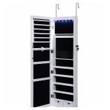SONGMICS Jewelry Cabinet Wall Door Mounted Jewelry Armoire Organizer with Mirror LED Light, White. REAL GLASS MIRROR - This cabinet is equipped with a big real glass mirror, which provides better performance and doesn't have the "fun house" effect. LOCKABLE WITH LED LIGHT - A lockable jewelry cabinet keeps your jewelry safe and away from kids, 6 LEDs powered by 3 AAA batteries (NOT INCLUDED), auto on and off design. WALL & DOOR MOUNTED - This jewelry cabinet can be mounted on the wall with screws or hang over the door with hooks, both are space saving ways. LARGE STORAGE CAPACITY - 1 large ring cushion, 1 scarf rod, 2 bottom drawers, 5 shelves, 32 necklace hooks, 48 earring holes, 90 earring slots and more. Item is in retail packaging! Retail $629.99 (40) |