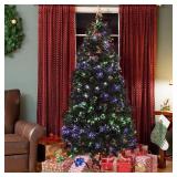 Best Choice Products Pre-Lit Fiber Optic 7' Green Artificial Christmas Tree with LED Multicolor Lights and Stand. Tree is made of dense PVC needles providing it with a fresh cut look that will last all season. Contains a sturdy iron base to provide the tree greater support and prevent the base from breaking. Contains 280 LED lights placed through out the tree that come in 4 different colors, and can alternate between 8 different sequences. The tree comes packaged in 2 different sections allowing easy assembly and storage. Great for indoor and limited outdoor use (not weather resistant) that can be used to decorate offices, apartments, or any room in a house! Dimensions: 7ft (l) x 3.5ft (w). Item is in retail packaging! Retail $74.95 |