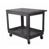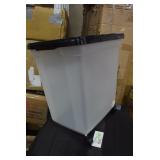 Clear Storage Tote with Black Lid. This is a photo of the actual item looks like one of the wheels has broken off. One broken wheel. Item has no packaging. Retail $11.99 |
