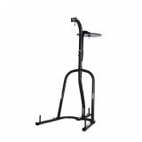 Everlast Dual-Station Heavy Bag Stand, Black. Stand from industry leader Everlast holds both heavy and speed bags Rugged, powder-coated steel tubing construction and three weight pegs provide maximum durability Supports any heavy bag up to 100 pounds Adjustable height speed bag platform handles all speed bag sizes Stand measures 48.25-by-84-by-69 inches (W x H x D) Item is in retail package. Box is still banded but has some damage. Retail $99.00 |