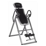 Exerpeutic Inversion Table with Comfort Foam Backrest. Sturdy, multi-angle, user-height adjustable inversion table with soft foam padded backrest Heavy duty 1.5-inch square steel frame with 300-pound weight capacity Extra-long, full loop safety handle bars and adjustable tether strap for safe and easy inversion adjustment and return to upright Foam rollers and ankle cushions hold ankles safely and comfortably; easy pull pin release Height adjustable for users from 4 feet, 10 inches to 6 feet, 6 inches tall. Item is in retail packaging. Retail $94.22 |