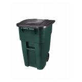 Rubbermaid Commercial Products 1829411 BRUTE Heavy-Duty Round Waste/Utility Container, 50 gal, GRAY IN COLOR, not green! For convenient waste collection from one location to the next. Built-in 8" rubber wheels. Handle allow easy tilt and mobility. Attached hinged lid can’t get lost, folds out of the way when opened. MISSING ONE WHEEL! GRAY NOT GREEN Item has no packaging. Retail $183.89 |