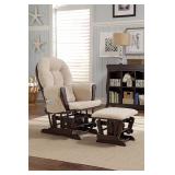 Stork Craft Hoop Glider and Ottoman Set, Espresso/Beige. This is the ideal glider and ottoman combination for your nursery with generous seating room, padded arm cushions and a pocket to store your belongings.Featuring metal, enclosed ball bearings for a smooth glide motion to help you unwind. The back and seat cushions are spot cleanable, keeping the look clean and fresh all year long. Back and seat cushions are hand washable only. Item is in retail packaging! Retail $146.66 |