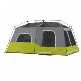 CORE 9 Person Instant Cabin Tent - 14' x 9'. Instant 60 Second Setup; Sleeps 9 people; Fits two queen air mattresses; Center Height:78. CORE H20 Block Technology and adjustable ground vent. Features room divider and wall storage pockets keep items neat and off the tent floor. Electrical cord access port (port is fully closable when not in use). Includes rain fly, tent stakes, and carry bag. Item is in retail packaging! Retail $209.17 |