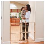 Evenflo Position and Lock Tall Pressure Mount Wood Gate. 32” tall wood gate that fits openings between 31-50”. Setup is quick and easy with the pressure mounted system allowing the gate to be effortlessly moved within seconds. Non-marring rubber bumpers helps prevent damage to your home and walls. The locking bar is marked and notched for easy installation. reat for pets and dogs that can jump over shorter gates. Item is in retail packaging! Retail $16.19 |