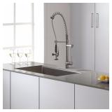 Kraus KPF-1602SS Single Handle Pull Down Kitchen Faucet Commercial Style Pre-rinse, Stainless Steel. Lead-free Brass construction with superior rust-resistant finish. Lite touch single-lever flow control. Heavy-duty commercial-style spring design. Integrated two-way diverter for smooth flow control. Powerful pre-rinse spray. Item is in retail packaging! Retail $349.95 |
