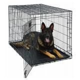 MidWest Life Stages Folding Metal Dog Crate. Single door metal dog crate, 48L x 30W x 33H inches Includes free divider panel, leak-proof plastic pan, carrying handle, rubber feet to protect floors and a 1 year Manufacturer's Warrranty. We manufacture the iCrate and the Life Stages Dog Crate. The main difference is the Life Stages is made of heavier gauge steel and has a tighter wire mesh making it stronger than iCrate. Two slide-bolt latches securely lock door in place Dog crate folds flat for convenient storage, travel and portabilitiy Strong and sturdy structual metal crate design creates a safe place for your pet while you're away. Item is in retail packaging. Retail $92.85 |