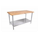 John Boos Maple Wood Top Stallion Work Table, Galvanized Legs, Adjustable Lower Shelf, 1-1/2" Thick, 48" Length x 30" Width. 1-1/2" Thick hard rock maple top style SCT flat top Maple top is finished with penetrating oil with optional natural clear varnique finish Galvanized base and undershelf Undershelf is adjustable; adjustable bullet feet Measures 48" length by 30" width. Item is in opened retail packaging. Retail $307.57 |