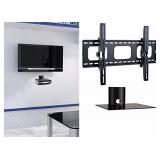 2xhome - NEW TV Wall Mount Bracket & One (1) Single Shelf Package – Secure LED LCD Plasma Smart 3D WiFi Flat Panel Screen Monitor Monitor Display Large Displays - Flat Thin Ultra Slim Sleek Against the Wall Adjusting Adjustable - Single 1 Tier Under TV Tempered Glass Floating Hanging Shelves Shelving Unit Rack Tower Set Bundle - Up to 15 degree degrees Tilt - Compatible VESA 200mm x 200mm, 400mm x 400mm , 600mm x 400mm, 700mm x 450mm, 718mm x 450mm. Item is in retail packaging. Retail $52.50 |