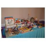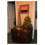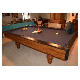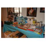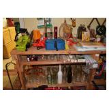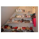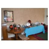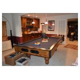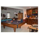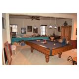 Pool Room: Pool Table, Collection of Trains, Tile Top Tea Cart, Mirrors, Pine Armoire, 1970’s Kitchen Table, MCM Large Floor Lamp, Children’s Items, Doll Carriage, Books, Boardgames, Christmas Collection, Christmas Trees, Ornaments, Wreaths, Antique Steamer Trunk, Barware, Microwave, Floor Lamp, Blender, and More.