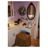 Bedrooms: King Size Bed, Dresser with Matching Mirror, Chest of Drawers, Glass Top Side Table, Chaise Lounge, Antique Steamer Trunk, Radio, Christmas Décor, Art, Linens, Women’s Accessories, Formal Linens, Baby Cradle, Rocking Chair, Loveseat, Pair of Antique Chairs, Side Tables, Glassware, Accessories, Smalls, and More.