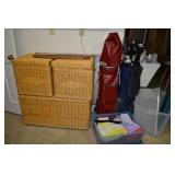 Storage Room: High Chairs, Full Size Iron Bed, Refrigerator, Armoire, Side Tables, Antique Chairs, Lamps, Golf Clubs, Wicker Ottomans, Nordic Track, and More.