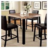 Rockham Contemporary Style Black Finish 5-Piece Counter Height Table Set. Material: Wood, veneers, leatherette Table Dimensions: 35.75” L x 35.75” W x 36” H Chair Dimensions: 16.25” W x 19.25” D x 38.5” H / Seat Height: 24.75”, Seat Depth: 15.5” Set DOES NOT INCLUDE:(4) chairs Assembly required Item is in factory carton! This item is only the table, does not include chairs. Retail if complete set $421.93 (60) |