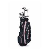 Callaway Men's Strata Complete Golf Club Set with Bag (12-Piece). Driver & 3 Wood: Woods have a forgiving sweet spot and a graphite shaft for exceptional distance (2 clubs & 2 headcovers) Hybrid (5H): Designed for versatility and forgiveness on shots where you would usually hit a difficult long iron (1 club) Irons/Wedges (6-PW): Perimeter weighting and progressive sole width technology for improved control (5 clubs) Putter: Mallet with T-Style alignment to help give you incredible accuracy Stand Bag: The lightweight, durable stand bag comes with five convenient pockets, an additional cooler pocket, a rain hood and a backpack strap system Driver & 3 Wood: Woods have a forgiving sweet spot and a graphite shaft for exceptional distance (2 clubs & 2 headcovers) Hybrid (5H): Designed for versatility and forgiveness on shots where you would usually hit a difficult long iron (1 club) Item is in retail packaging! Retail $219.99 |